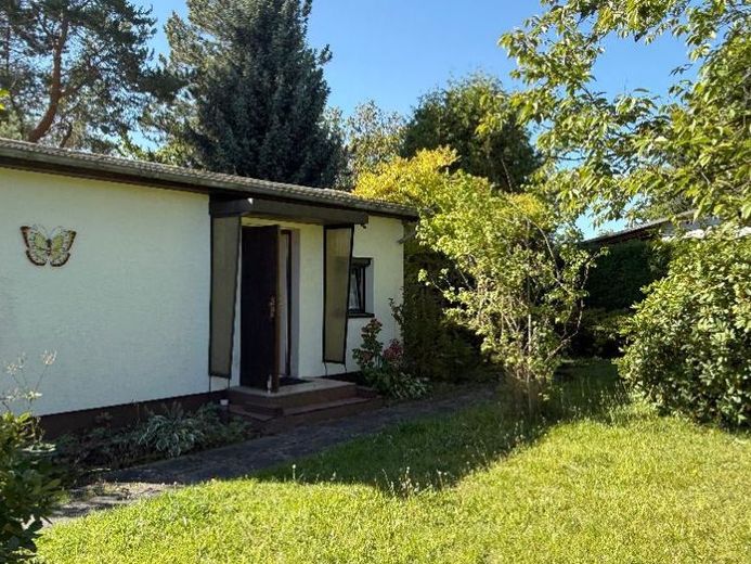 Das Grundstück ist mit einem kleinen, sehr gepflegten Bungalow bebaut. Dieser verfügt über Strom-, Wasser- und Abwasseranschluss und ist funktional aufgeteilt in ein Wohn-/Schlafzimmer, eine Küche sowie ein Duschbad. Der Bungalow ist zudem unterkellert und bietet somit zusätzlichen Stauraum.