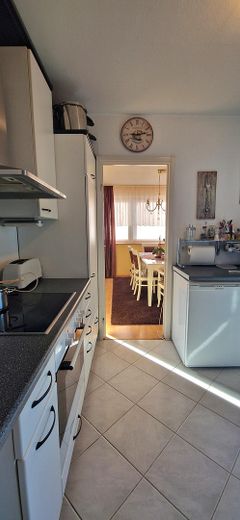 Hier finden Sie den großzügigen und hellen Wohn- und Essbereich mit viel Tageslicht und einer wundervollen Aussicht. Die beiden geräumigen Schlafräume sind ebenfalls hell und freundlich sowie die vorhandene Küche inklusive Küchenschränke. Kunststofffenster sind in der gesamten Wohnung enthalten. Eine neue Wohnungseingangstür mit Zarge wurde in 2023 montiert. Eines der Highlights der Wohnung sind die beiden vollständig überdachten Süd-Balkone, die jeweils mit einer Markise ausgestattet sind und zum Entspannen und gemütlichen Verweilen einladen. Zum großflächigeren Balkon haben Sie vom Wohn- und Essbereich Zugang. Zu dem weiteren Balkon haben Sie Zugang aus einem der beiden Schlafräume und aus der Küche. Das Badezimmer ist mit einer Eckbadewanne, einem Handwaschbecken und einem Waschmaschinenanschluss ausgestattet. Das WC ist separat und angrenzend untergebracht und ebenfalls mit einem Handwaschbecken ausgestattet. Eine geräumige Abstellkammer mit genügend Platz für Stauraum rundet den geschickten Grundriss ab. Ein separater Kellerraum komplettiert die Wohnung zusätzlich. Ihren PKW können Sie ganz bequem auf den überbreiten Tiefgaragen-Stellplatz im Haus parken (zzgl. 15.000€). Die innenliegende, gepflegte Tiefgarage hat einen direkten Zugang zu den Aufzügen und wurde in 2014 saniert.