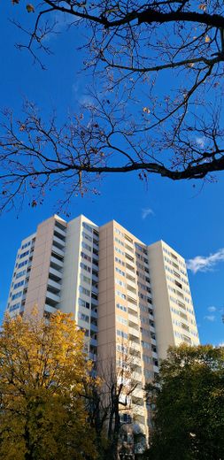Die Wohnung überzeugt durch ihren perfekten Schnitt, der beiden Balkone und einem Panoramablick aus allen Räumen. Mit dem Fahrstuhl gelangen Sie in die schöne Wohnung im 17. Obergeschoss.