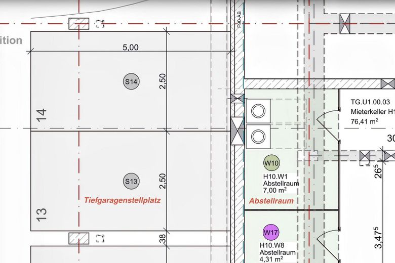 Auf dem eigenen Tiefgaragenstellplatz (S13) steht das Auto sicher. Der Anschluss zur Einrichtung einer Wallbox ist am Stellplatz vorbereitet.