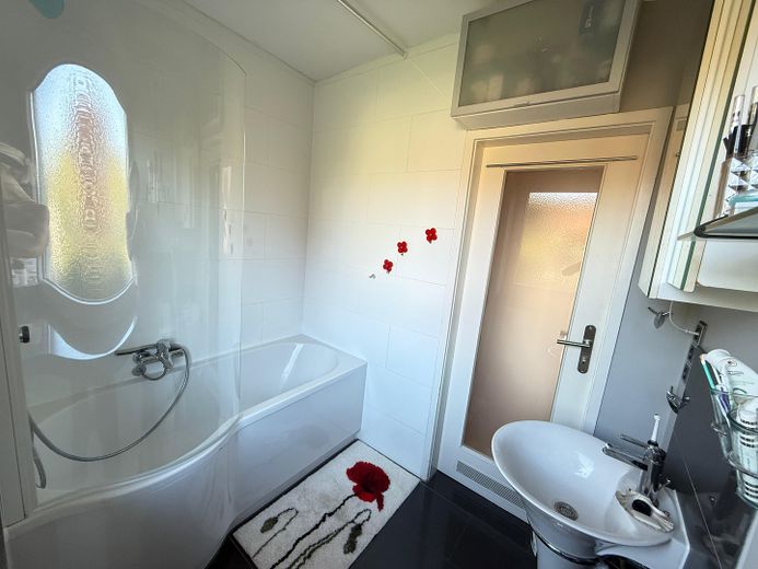 Das Obergeschoss bietet zwei helle Schlafzimmer, ein modernes Tageslichtbad mit Badewanne und Dusche sowie einen praktischen Abstellraum. Im ausgebauten Dachgeschoss finden sich zusätzliche Wohnräume mit Laminatböden und zwei neuen Velux-Dachfenstern.