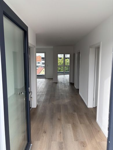 Sie ist im 4. und 5. Stock belegen. Aus dem per Aufzug erreichbaren Hausflur betreten Sie einen Laubengang, der zur Wohnung führt. Von hier treten Sie in den Wohnungsflur. Gleich links liegt ein großzügiges Tageslicht-Bad mit bodentiefer Dusche. Rechts gelegen ist ein getrenntes Zimmer Richtung Hackländer Str, das sich gut als Kinder- oder Schlafzimmer eignet. Außerdem erschließen sich hier der Zutritt zu einem sehr großzügigen Abstellraum mit Waschmaschinenanschluss, zu einem Gäste-WC und in ein weiteres Schlaf- bzw Kinderzimmer in Richtung des sehr offenen und ruhigen Innenhofs. Auch betreten Sie vom Flur Haus die sehr offene Küche mit Anschluss zu einem ersten Balkon Richtung Innenhof. Das Küchenmobiliar muss selbst gestellt gestellt werden und wird nicht mit vermietet. Aus dem offenen Küchen-Ess-Bereich führt dann eine Treppe nach ganz oben ins Wohnzimmer. Hieran angeschlossen sind zwei große Balkone/Dachterrassen - eine Richtung Süden, eine Richtung Norden, über welche Sie jeweils eine atemberaubenden Blick über die Stadt genießen können.