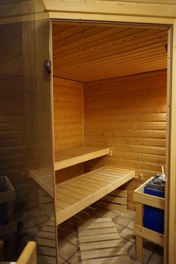 •Wellnessbereich mit Sauna für bis zu 4 Personen, Dusche, Waschbecken und WC