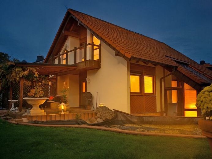 Dieses Haus sticht durch viele Extras und liebevolle Details aus der Masse hervor. Die toskanischen Elemente im Garten und Wohnbereich geben der Immobilie ein besonderes Flair und Lebensgefühl. Im Erdgeschoss dominiert eine offene Architektur, die Wohnbereich, Essbereich Küche und Wintergarten zu einem großen Ensemble verbindet.