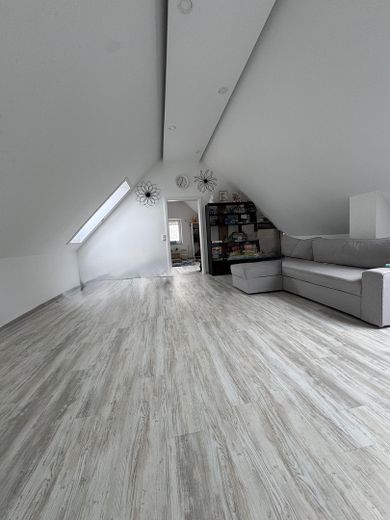 Ein besonderes Highlight ist der neu ausgebaute Dachgeschossbereich, der vor rund sechs Jahren vollständig modernisiert wurde. Der Ausbau erfolgte mit höchsten Ansprüchen an Design und Wohnkomfort. Die moderne Holztreppe mit integriertem Glasschutz fügt sich harmonisch in das Gesamtbild ein und wirkt gleichzeitig offen, leicht und hochwertig. Das Dachgeschoss selbst präsentiert sich in einer zeitgemäßen, stilvollen Gestaltung und bietet vielseitige Nutzungsmöglichkeiten.