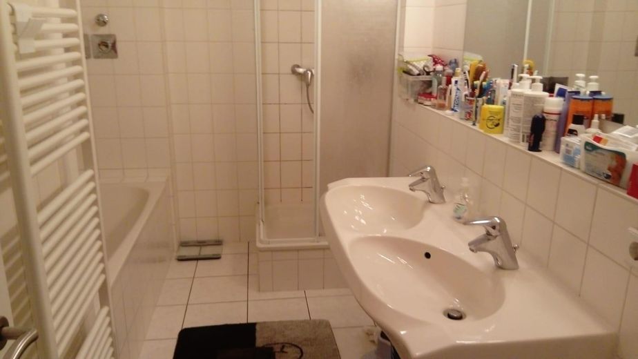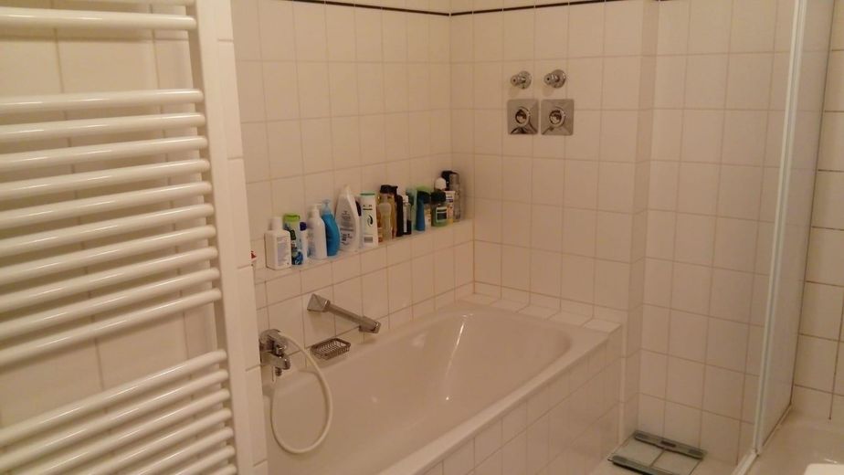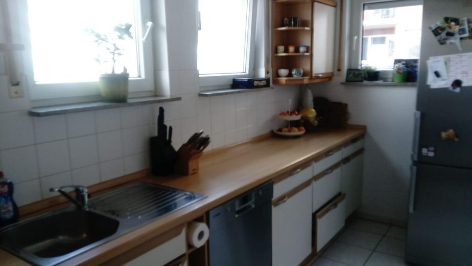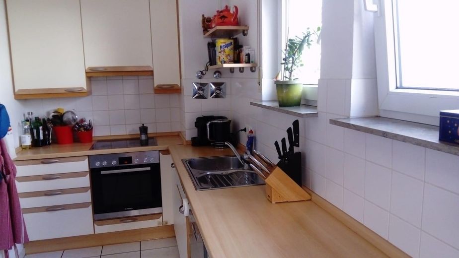 This is a quiet and beautiful 3.5 room apartment with a large terrace overlooking a lovely garden. The apartment is located in a peaceful residential area with elevator access and was recently renovated. It features a fully equipped 13.5 square meter kitchen with an oven, induction hob, dishwasher, refrigerator, and freezer. The apartment also includes a separate wash house, a large cellar room, an intercom system, central heating with a separate register, a six square meter bathroom with shower, bathtub, a washing machine, a separate guest toilet, and a bike house. A parking space is available, though it is not reserved for the apartment. An underground parking space is optionally available for an additional 100 EUR.