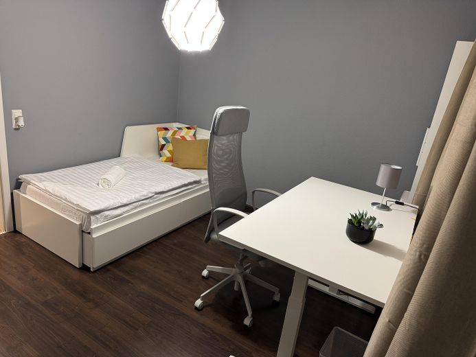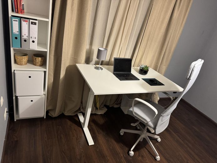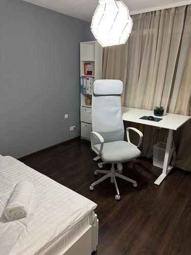 The apartment is fully furnished and ready to move in. Each room is modern and functional and includes everything needed for living and working:
