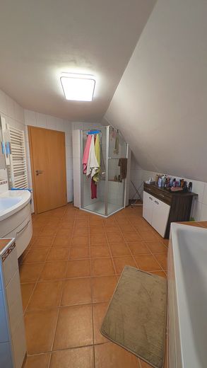 Im Obergeschoss befinden sich drei Schlafzimmer und ein Büroraum, im beheizten Keller steht ein weiteres Zimmer zur Verfügung. Insgesamt gibt es drei Badezimmer. Der Vollkeller beherbergt zudem eine Sauna – ideal für entspannte Stunden zuhause.