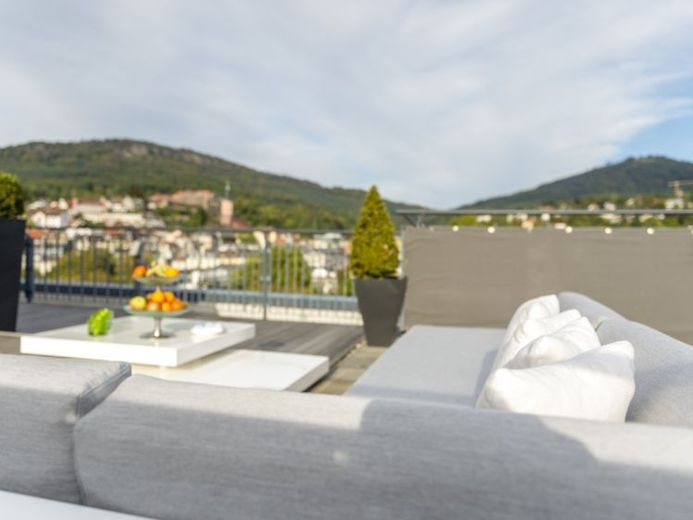 Das Penthouse bietet zwei Schlafzimmer, Badezimmer und insgesamt drei Zimmer. Die offene Wohnküche lädt zum gemütlichen Beisammensein ein und der Balkon bietet einen schönen Ausblick in die Stadt. Die hochwertige Ausstattung und die modernen Annehmlichkeiten sorgen für ein komfortables und angenehmes Wohngefühl. Der offene Kamin sorgt für wohlige Wärme in den kalten Wintermonaten.
