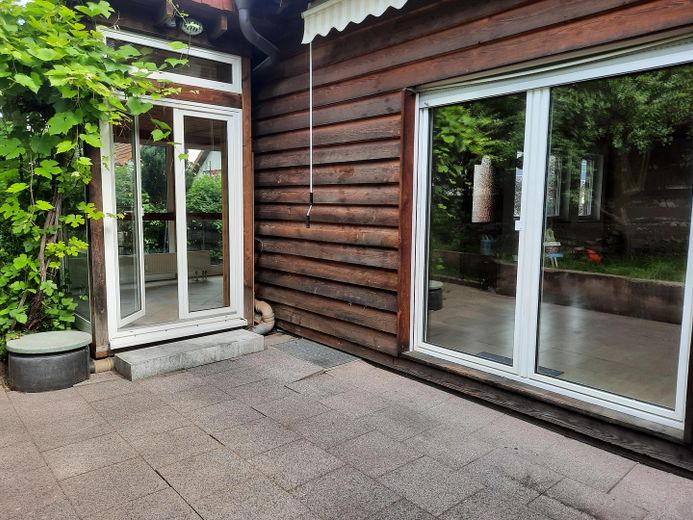 Eine Doppelhaushälfte mit 3 Zimmern und einem komplett ausgebauten Spitzdach als Galerie (16qm) für Arbeitszimmer hervorragend geeignet, sonnendurchflutet und warm. Im Erdgeschoss der Wohnung sind Wohnzimmer mit einem Kaminofen, Essecke und einer großer Küche sowie ein geräumiger beheizter Wintergarten und eine Terrasse mit Gartenanteil. Im Obergeschoss ist ein großes Schlafzimmer, Kleinzimmer und Bad.