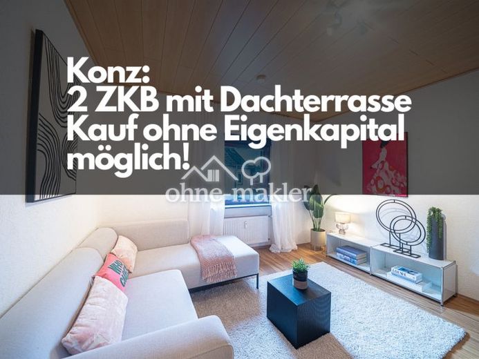 **Kauf ohne Eigenkapital möglich**Schöne helle 2 Zimmer Wohnung in zentraler Lage von Konz25qm DachterrasseEinbaukücheTageslichtbad mit DuscheWohnzimmerSchlafzimmer