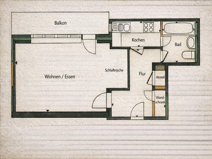 Diese kompakte, aber sehr gut geschnittene 1‑Zimmer‑Wohnung im 1. Obergeschoss eines gepflegten Mehrfamilienhauses bietet auf 42 m² alles für ein komfortables Wohnen. Die Wohnung verfügt jedoch über eine voll ausgestattete Einbauküche sowie ein modernes Badezimmer und einen Balkon.