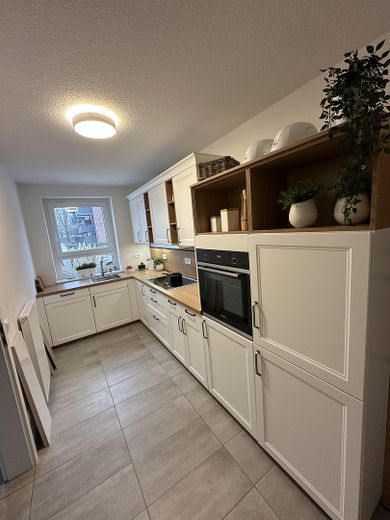 Es besteht die Möglichkeit, die Einbauküche entweder im Rahmen des Mietvertrages zu nutzen oder diese in Raten zu erwerben. Im Falle eines Erwerbs kann die Küche bei Auszug entweder an die nachfolgenden Mieter weiterverkauft oder vom Mieter mitgenommen werden. Die genauen Konditionen hierzu werden individuell und unmittelbar vor Abschluss des Mietvertrages vereinbart. Angebote zur Demontage oder Entfernung der Küche werden nicht berücksichtigt.