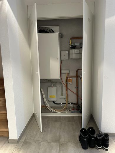 • + Gas-Zentralheizung mit Warmwasserspeicher