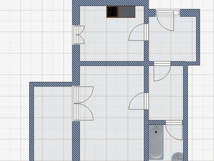 Die Wohnung verfügt über 2 Zimmer, darunter ein geräumiges Schlafzimmer und ein stilvolles Badezimmer. Der Bodenbelag aus Parkett und Fliesen verleiht den Räumen eine warme und einladende Atmosphäre.