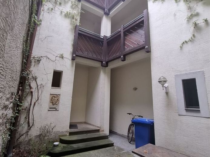 Saniertes Renaissancehaus in der Nähe von Schloss Hartenfels mit vier Wohnungen und kleinem Innenhof. Es besteht Denkmalschutz. NKM p.a. 13.776,00 €.