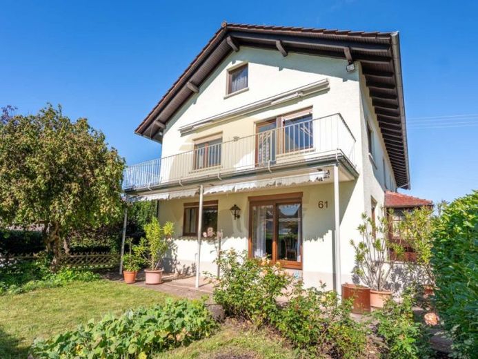 In einer ruhigen Sackgasse von Baden-Baden-Steinbach liegt dieses besondere Wohnhaus, umgeben von Wiesen und Feldern, ohne jeglichen Durchgangsverkehr – ein Ort, an dem man die Ruhe der Natur in vollen Zügen genießen kann, ohne auf die Nähe zur Stadt verzichten zu müssen. Das 1966 erbaute Haus wurde ursprünglich als Wohn- und Landwirtschaftsgebäude für den Weinbau genutzt, was sich noch heute im charaktervollen Kellerzugang zeigt: Über eine breite Außentreppe mit Holzdoppeltor gelangten früher Trauben, Fässer und Geräte hinein, ein Stück lebendige Geschichte, das dem Haus seinen einzigartigen Charme verleiht.