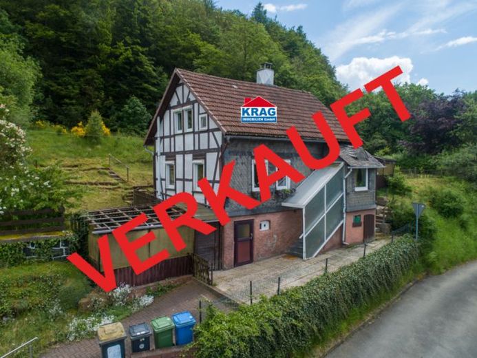 Sonnig mit Weitblick am Wald | Fachwerkhaus in Angelburg-Frechenhausen | Baujahr um 1900 mit einem Anbau von 2012 | teilmodernisiert | circa 1.175 m² Grundstück | Erdgeschoss mit 1 Raum, Küche, Bad, WC | Dachgeschoss mit 2–3 Räumen, Abstellraum, Balkon | circa 73 m² Wohnfläche | Einbauküche | Teilkeller | Abstellräume | Garten | Grillhütte | Schuppen | Instandsetzungsbedarf gering | 50.000 € Mindestgebotspreis | provisionsfrei (#19192)