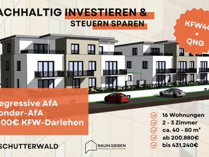 Das Projekt wird im Effizienzhausstandard KfW-40 mit QNG-Zertifizierung errichtet. Für Kapitalanleger ergeben sich dadurch attraktive steuerliche und finanzielle Vorteile: