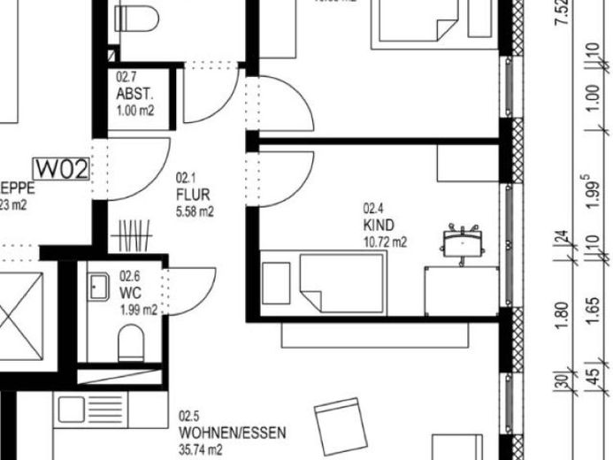 Die Wohnung verfügt über zwei gemütliche Zimmer sowie einen offenen Wohn- und Essbereich, der viel Raum zur individuellen Gestaltung bietet. Ein modernes Badezimmer, ein Gäste-WC sowie ein praktischer Abstellraum sorgen für zusätzlichen Komfort. Die hochwertige Einbauküche ist sehr gut ausgestattet.
