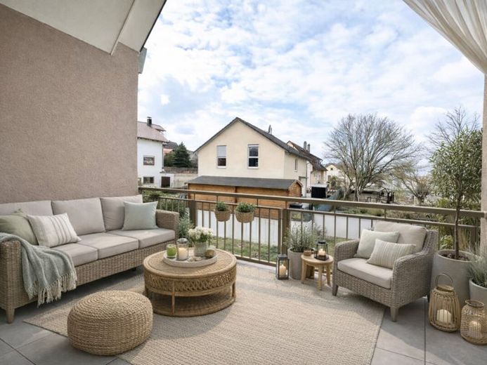 Diese elegante Dachgeschosswohnung überzeugt durch ihren offenen Wohn- und Essbereich, der mit viel Licht durchflutet wird und direkten Zugang zur Loggia bietet. Der angrenzende Abstellraum und die Garderobe bieten praktischen Stauraum, und von der Garderobe aus gelangen Sie in das Gäste-WC, das ebenfalls geschmackvoll und funktional gestaltet ist.