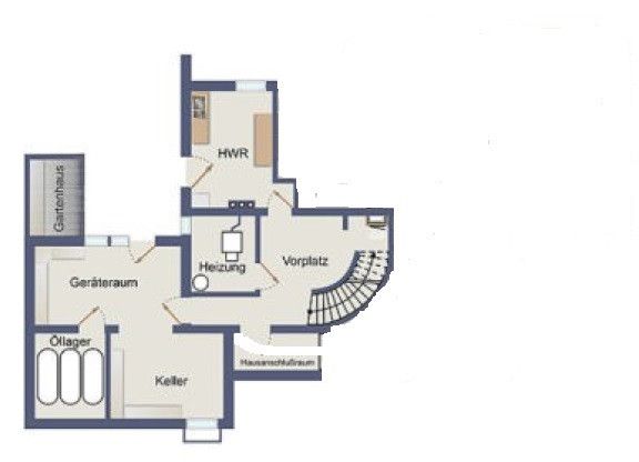 Weiterhin sind noch folgende Nebenräume im Keller vorhanden: Hauswirtschaftsraum, Diele, Heizraum, großer Arbeits- bzw. Werkraum unter der Garage. Der Garten steht dem Mieter zur Nutzung zur Verfügung und wird noch durch einen Geräteschuppen ergänzt.