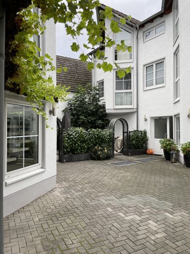 Im Innenhof gibt es einen grünen Terrassenbereich, welches beide Wohnparteien nutzen können. Ein weiteres Highlight sind die beiden überdachten Stellplätze, die der zu mietenden Wohneinheit zugeordnet sind.