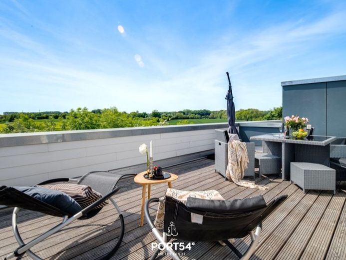 Die 130 m² Maisonettewohnung (Baujahr 2019) befindet sich in einem Haus mit vier Wohneinheiten. Verwöhnt werden die Ostseeurlauber in diesem luxurösen Feriendomizil mit einem großzügigen und komplett lichtdurchfluteten Wohnraum im Dachgeschoss (ca. 20 m²) plus Ofen, einem Bad mit Wanne sowie einer offen & modern gestalteten Wohn-Küche. Die herrlich sonnendurchflutete Dachterrasse erweitert den Wohnbereich und lässt den Tag mit abendlichem Meerblick harmonisch ausklingen.