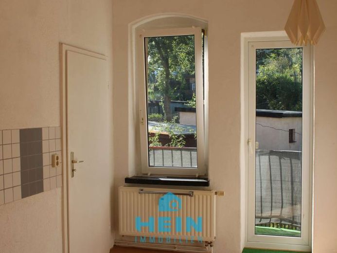 Die Küche ist mit Fenster und Laminatboden ausgestattet. Ein Fliesenspiegel ist vorhanden und die Wände und die Decken der gesamten Wohnung sind mit Rauhfasertapete tapeziert. Bis auf das Kinderzimmer, welches Sie über die Küche erreichen, sind alle Räume vom Flur aus begehbar. Der ebenfalls von der Küche zugängliche Balkon bietet einen tollen Blick ins Grüne.
