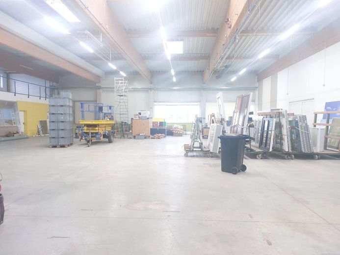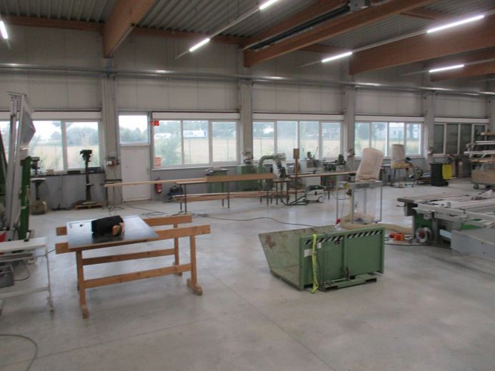 Produktionshalle mit Nebenräumen sowie Büroräume,ca.1700 qm Nutzfläche, mit offener Überdachung, Zentrale Lage im Gewerbegebiet am Wasserturm. Bauweise: Holzbinderkonstruktion, Tageslicht durch großzügige Elemente, motorbetriebene Rollladen. Hallenbeleuchtung: LED, Hallenhöhe: 4,75 mtr., 3 Hallentore, davon eines mit LKW-Durchfahrtshöhe. Beheizung: 7 separat ansteuerbare Dunkelstrahler, Energieversorgung: Gas, große Einfahrt mit Parkmöglichkeiten, Ideal für Produktion, Lagerung und Büroabwicklung.
