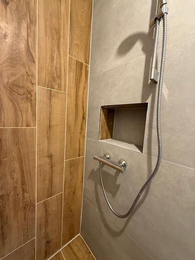 - Neues, modernes Badezimmer mit Dusche und Handtuchheizkörper