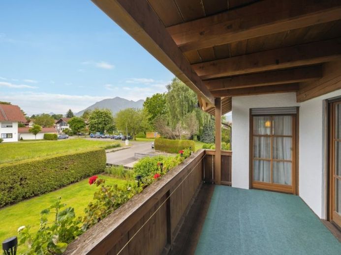 Das Obergeschoss bietet eine Wohnfläche von rund 102 m², aufgeteilt in zwei separate Wohneinheiten – jeweils mit eigenem Bad. Diese Konstellation eignet sich hervorragend zur Nutzung als Kinder- oder Gästebereich. Beide Einheiten teilen sich einen nach Süden ausgerichteten Balkon mit beeindruckendem Blick auf die Chiemgauer Alpen – ein echtes Highlight der Immobilie.
