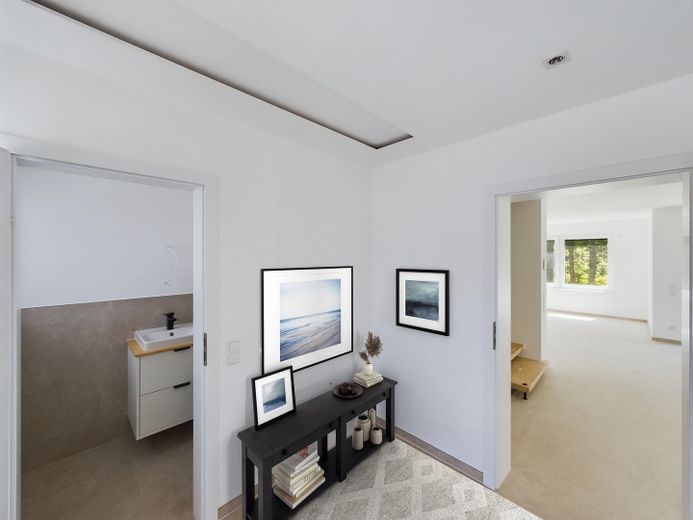 Das Haus wird unmöbliert verkauft. Die Möbel auf den Bildern sowie die Küche sind nicht vorhanden und wurden zur Visualisierung hinzugefügt.