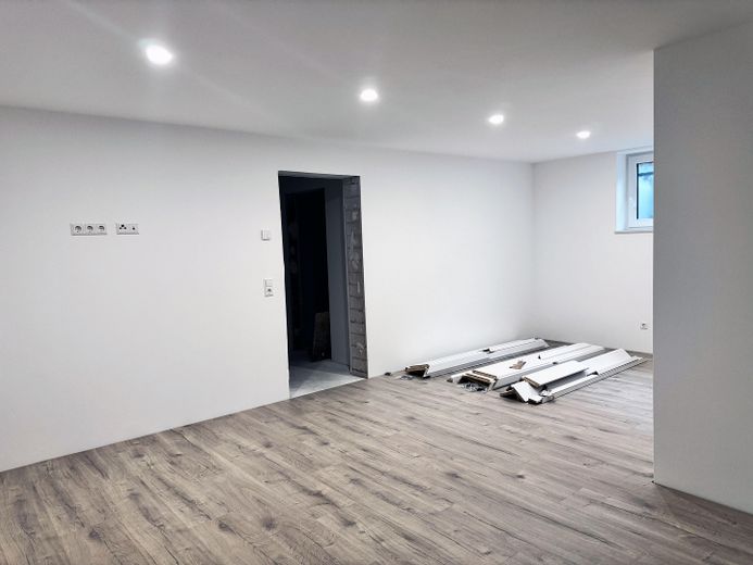 - Neue Bodenbeläge und frisch verputzte, tapezierte und gestrichene Wände