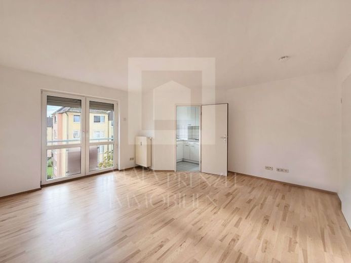 Der großzügig geschnittene Wohnbereich bietet direkten Zugang zur separaten funktionalen Küche, die bereits mit einer Einbauküche ausgestattet ist.
