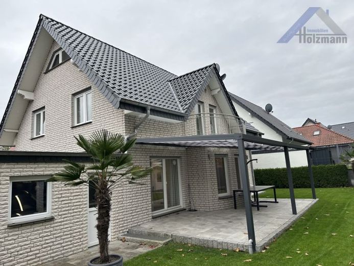 In einer 30er Zone in Herford befindet sich dieses neuwertige Einfamilienhaus Baujahr 2006. Das Gebäude steht auf einem ca. 456 m² Grundstück, mit einer Wohnfläche von ca. 161,30 m². Zudem kann der Spitzboden mit einer Nutzfläche von ca. 47,43 m² als Wohnraum genutzt werden. Sie betreten das Einfamilienhaus über die geräumige Eingangsdiele. Von hier aus gelangen Sie zum HWR, Gäste-WC mit Dusche, zum Wohn-/Esszimmer mit angrenzender Küche oder über die Treppe in das Dachgeschoss. Die Grundrissgestaltung mit fließendem Übergang von der Küche bis hin zum Ess-/ und Wohnbereich gibt Ihrer Familie Raum zum Verweilen. Vom Wohn-/ Essbereich aus gelangen Sie in den Garten mit der überdachten Terrasse. Der Garten bietet Ihren Kindern viel Platz zum Toben. Im Dachgeschoss befinden sich zwei Kinderzimmer sowie das Elternschlafzimmer. Das große Badezimmer mit einer Eckbadewanne lädt zum Entspannen ein. Zudem Verfügt das Badezimmer über einen BD. Für Ihre Fahrzeuge und die Ihres Besuches bietet der Bereich vor dem Haus Platz. Zudem ist eine Doppelgarage vorhanden. Beheizt wird das Gebäude mit einer Gasheizung von der Firma Viessmann. Es befindet sich eine Fußbodenheizung im Erd- und Dachgeschoss. Gartenhaus und Enthärtungsanlage runden das Angebot ab.