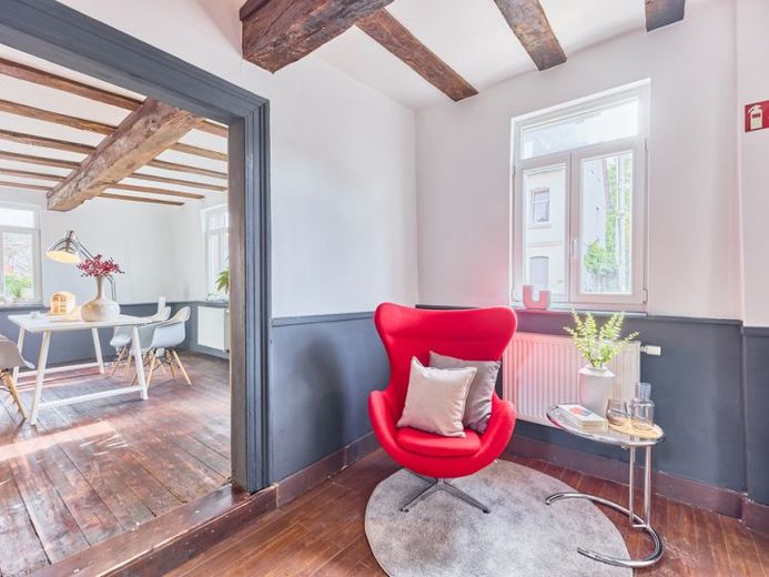 Dieses denkmalgeschützte Haus aus dem Jahr 1750 verbindet historische Eleganz mit modernstem Komfort. Es wurde im Jahr 2017 aufwendig und authentisch saniert, wobei besonderer Wert auf die Bewahrung des ursprünglichen Charakters gelegt wurde.
