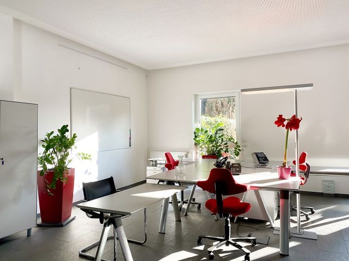 1 Büroraum (ca. 30m² mit 2-4 Arbeitsplätzen, inkl. Telefon / Internet, möbliert, inkl. Bürodienstleistungen (20h pro Monat), inkl. Reinigung, inkl. Strom / Heizung, inkl. 2h Besprechungsraum pro Monat, Mitbenutzung Büroküche mit Kaffeeautomat