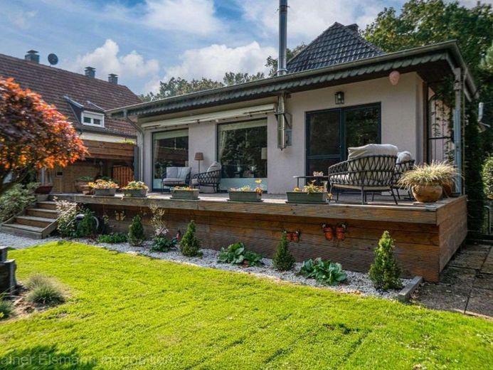 Das Haus überzeugt mit einem barrierefreien Eingang und einem neu angelegten Vorgarten. Im rückwärtigen Bereich erwartet Sie ein liebevoll gestalteter Garten mit Rasenfläche, Nutzgarten, überdachter Terrasse mit elektrischer Markise, einer weiteren Terrasse im Grünen. Ein Carport mit elektrischem Rolltor, eine moderne Sauna (Baujahr 2025) und ein Hühnerstall runden das Angebot ab.