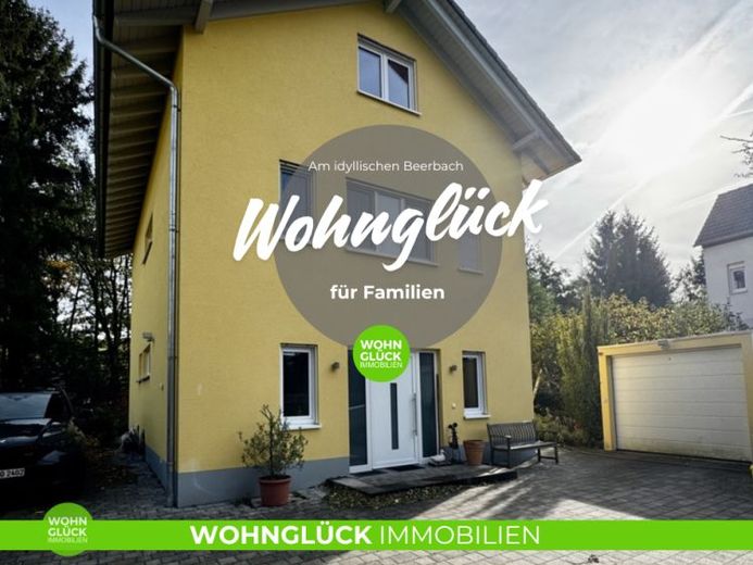 Dieses wunderschöne, neuwertige Einfamilienhaus aus dem Jahr 2016 liegt ruhig und geschützt abseits der Straße – direkt am malerischen Beerbach.