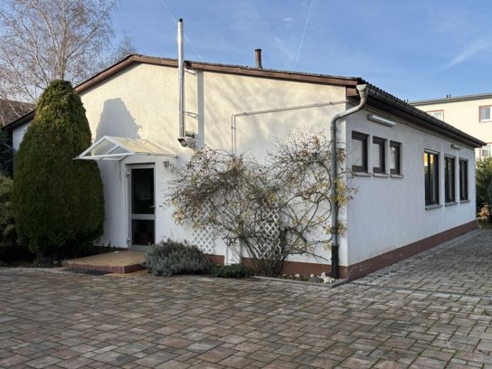 Bei dem angebotenen Gewerbeobjekt handelt es sich um ein ebenerdiges, freistehendes Gebäude, das sich im hinteren Bereich eines Grundstücks befindet. Eine breite Zufahrt von der Straße sorgt dennoch für eine sehr gute Anfahrbarkeit – auch für Lieferverkehr.