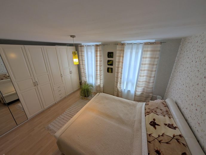 Das erste Obergeschoss verfügt über zwei gut geschnittene Schlafzimmer und ein Tageslichtbad mit Badewanne, separater Dusche und WC – ideal als klassischer Eltern-Kind-Bereich.