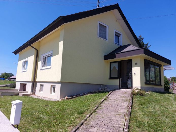 Freistehendes Einfamilienhaus mit großem Grundstück in ruhiger Lage von Schörzingen bei Schömberg. Das Haus ist eingeschossig mit voll ausgebautem Dachboden und voll unterkellert (nicht wohnlich). Insgesamt ca. 289m². Es ist leerstehend und kernsanierungsbedürftig – ideal für Renovierer und Familien mit Gestaltungswunsch.