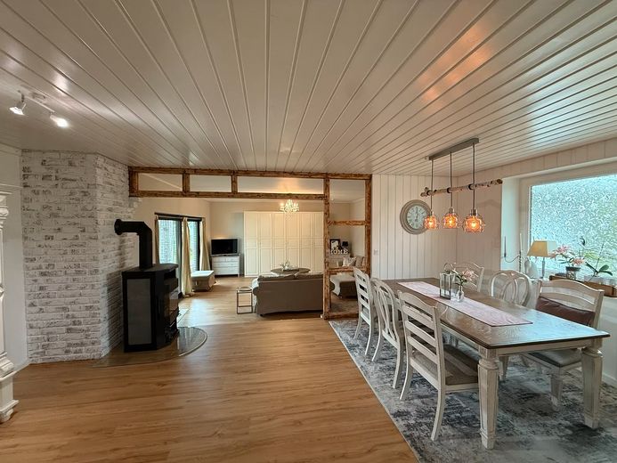 - geräumiger Wohn-/ Essbereich mit Kaminofen