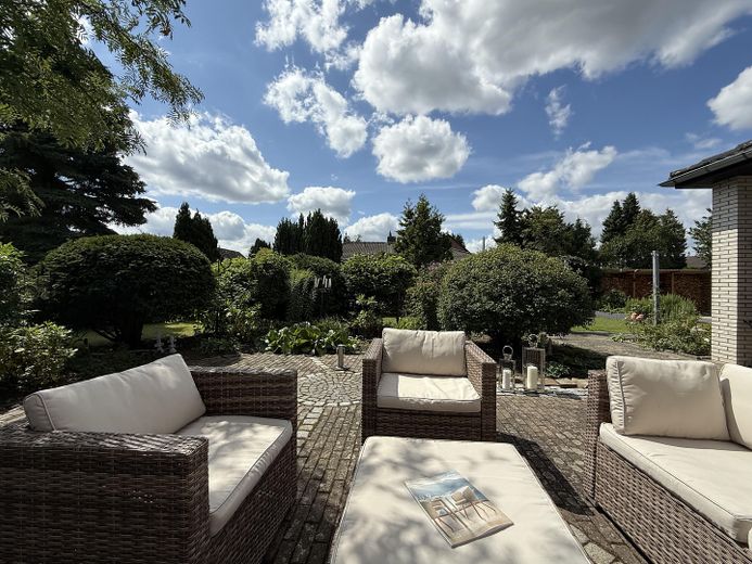 Dieses wunderschöne Einfamilienhaus wurde 1979 im Bungalowstil massiv erbaut und verklinkert. Es präsentiert sich in einem sehr gepflegten Zustand und befindet sich auf einem ca. 966 m² großen Grundstück in ruhiger, bevorzugter Randlage, eingebettet in einen liebevoll angelegten Garten mit uneinsehbarer Terrasse in Südwest Ausrichtung.