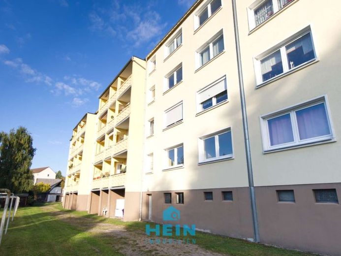 Die Wohnung bietet auf 57 m² Wohnfläche drei Zimmer, eine Küche, ein Badezimmer mit Badewanne sowie einen zentralen Flur. Der helle Wohnbereich verfügt über einen Südbalkon mit freiem Blick ins Grüne. Ein Kinder- bzw. Arbeitszimmer ergänzt das Raumangebot. Die Böden sind mit Laminat und Fliesen ausgestattet. Zusätzlich steht ein eigenes Kellerabteil zur Verfügung. Diese Wohnung ist seit 1986 solide vermietet und erzielt aktuell eine Nettokaltmiete von 237,89 Euro monatlich (2.854,68 Euro p.a.). Der Miteigentumsanteil liegt bei 240,6/10.000.