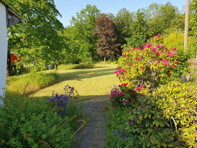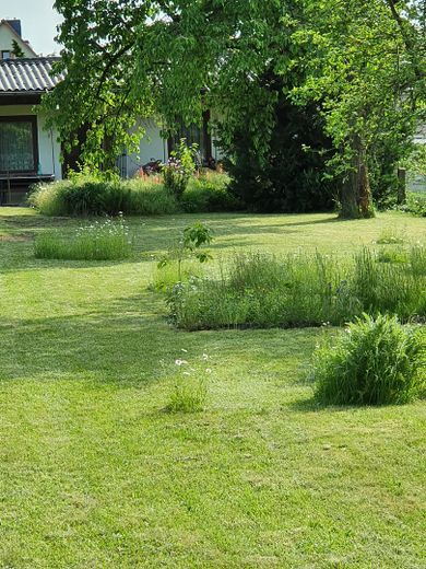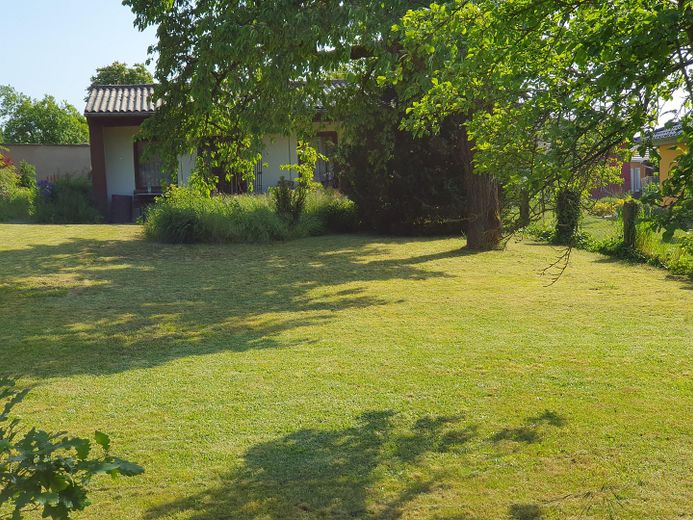 Auf dem Grundstück steht noch ein sanierungsbedürftiger Bungalow, der integriert, zum Gästebungalow umgebaut , oder abgerissen werden kann.