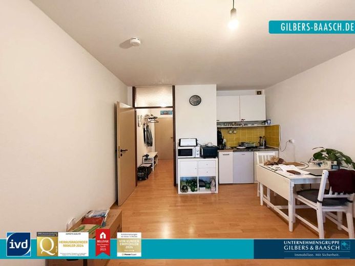 Der Wohnraum ist hell und funktional geschnitten. Der Balkon bietet zusätzlichen Komfort und steigert die Vermietbarkeit.
