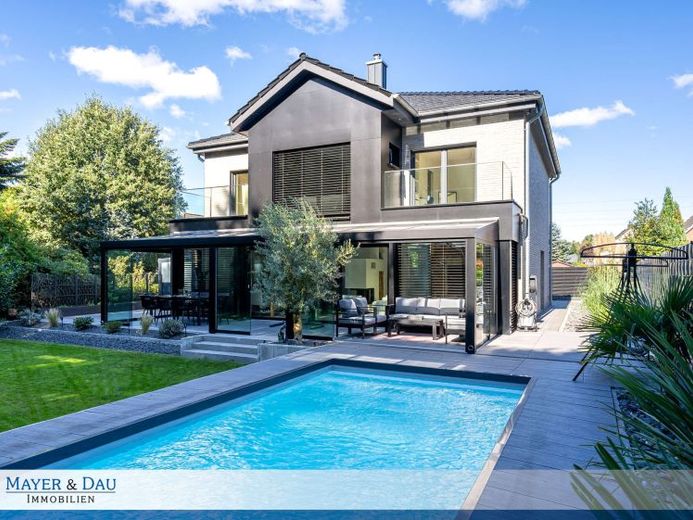 Der liebevoll und pflegeleicht angelegte Garten ist nach Süden ausgerichtet – sodass Privatsphäre garantiert ist. Ein absolutes Highlight ist der moderne Pool, der nicht nur für Erfrischung an warmen Tagen sorgt, sondern das Grundstück optisch aufwertet und zu einem echten Wohlfühlort macht.