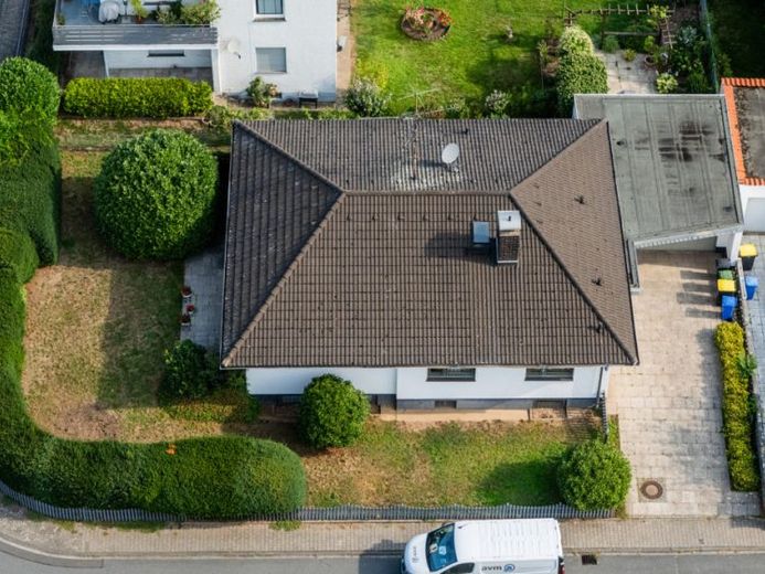 Der gut geschnittene Grundriss bietet Ihnen im Erdgeschoss einen großzügigen Wohn- und Essbereich mit Zugang zur Terrasse, zwei Schlafzimmer, eine Küche, ein Tageslichtbad mit Wanne und Dusche, sowie ein Gäste-WC.
